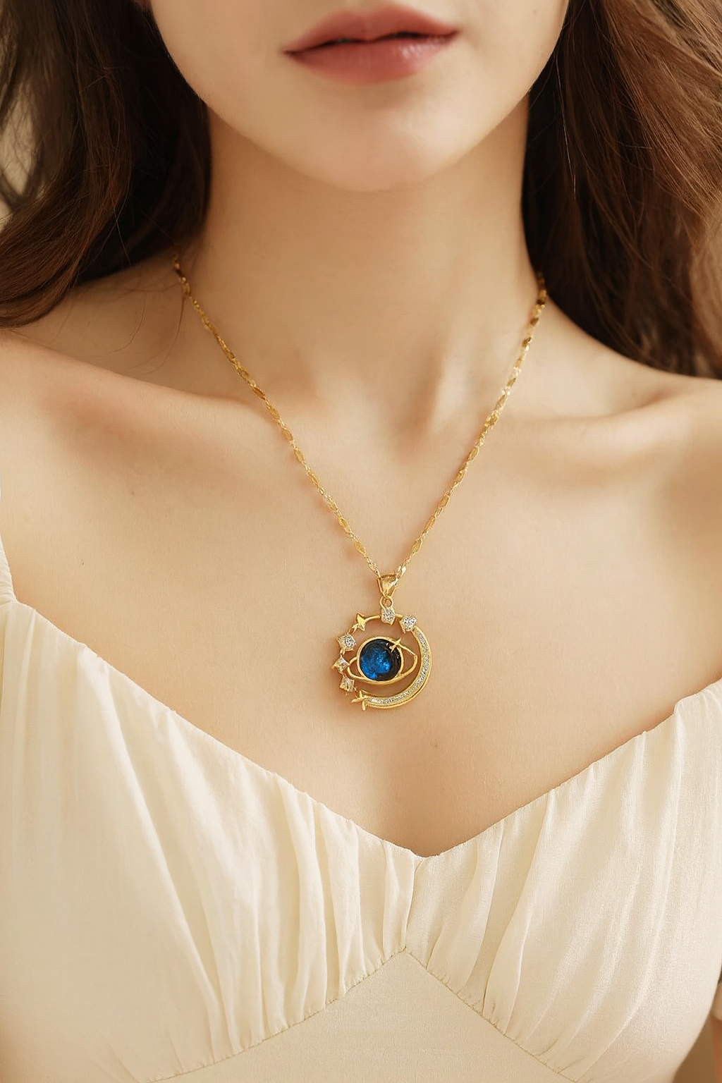 Light Luxury Titanium Steel Star Astronaut Series Necklace for Women Gold Color Planet Moon Astronaut Pendants Necklaces Jewelry
